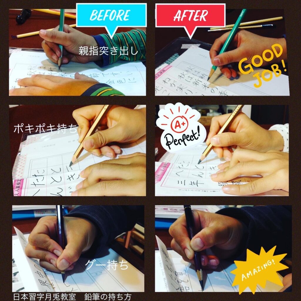 鉛筆の持ち方で字が変わってきます。正しい姿勢を身に着けることが大切です。