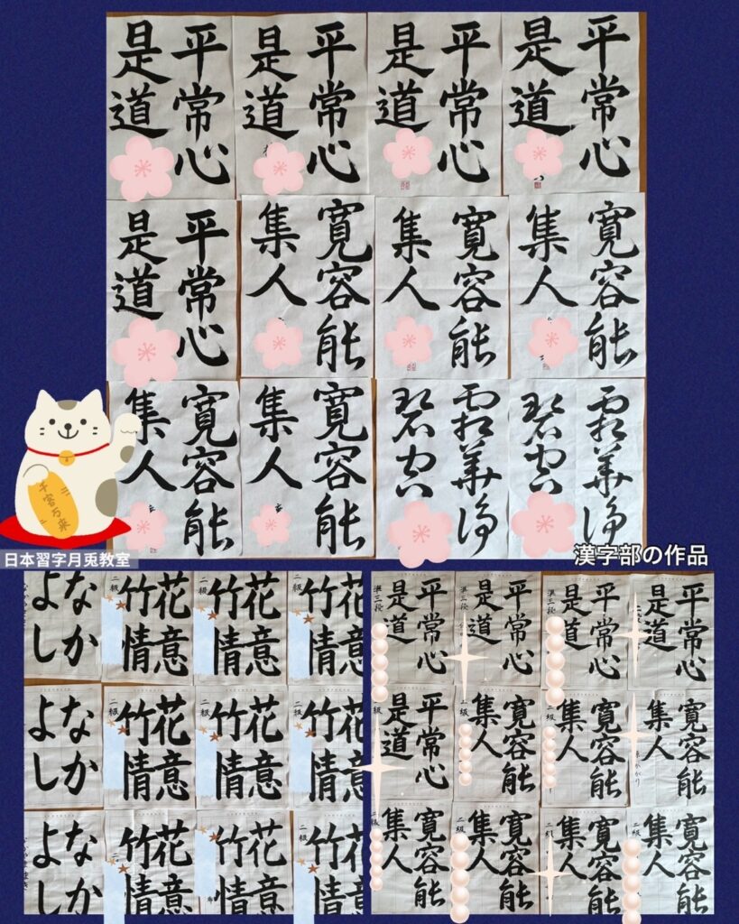 日本習字 月兎教室では、お子様からご年配の方まで、毎月の課題を楽しく書きながら、ご自分のペースで習字を楽しんでおられます。