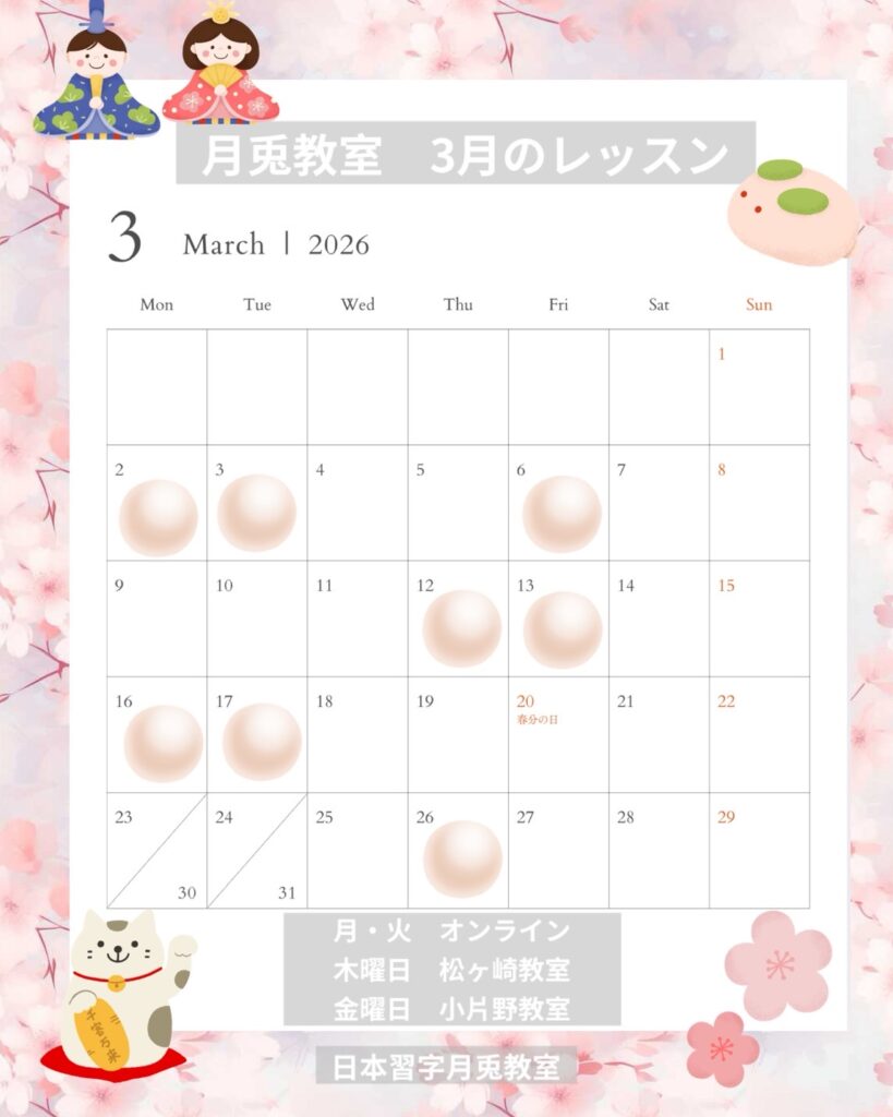 松阪市の月兎習字教室 3月レッスンスケジュール|今学期の集大成に挑戦しよう