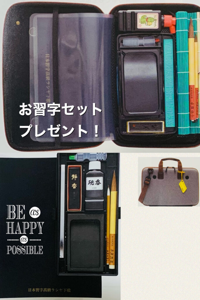 9/中旬まで習字セットプレゼントキャンペーンを開催しています。実際に手に取って見てみてください。習字を始めるきっかけになったらうれしいです。