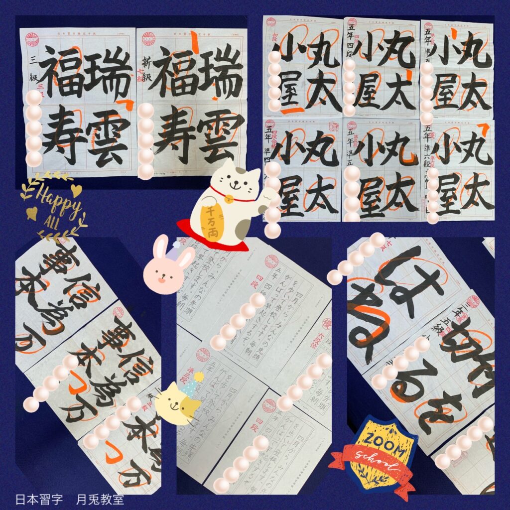 日本習字 月兎教室では、お子様からご年配の方まで、毎月の課題を楽しく書きながら、ご自分のペースで習字を楽しんでおられます。
