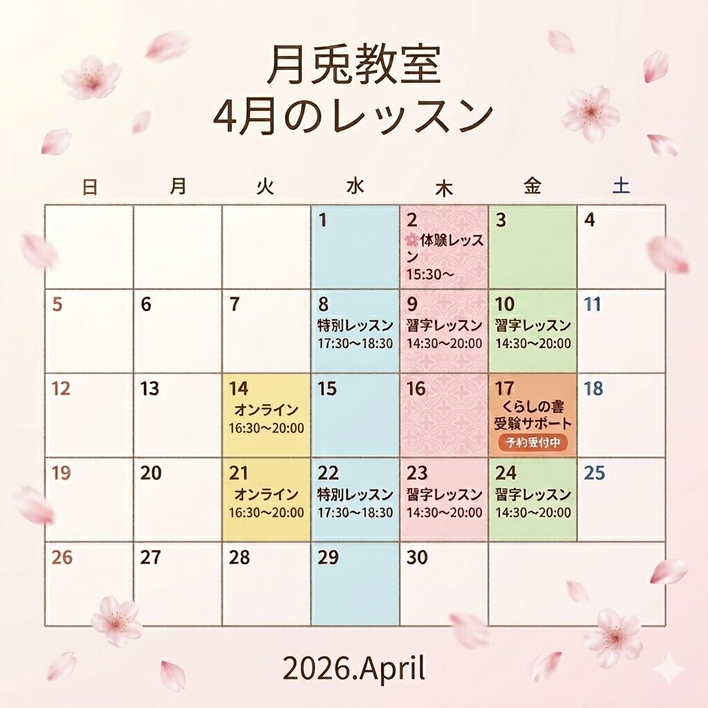 松阪市の習字教室|4月スケジュールと春の体験レッスン|月兎教室