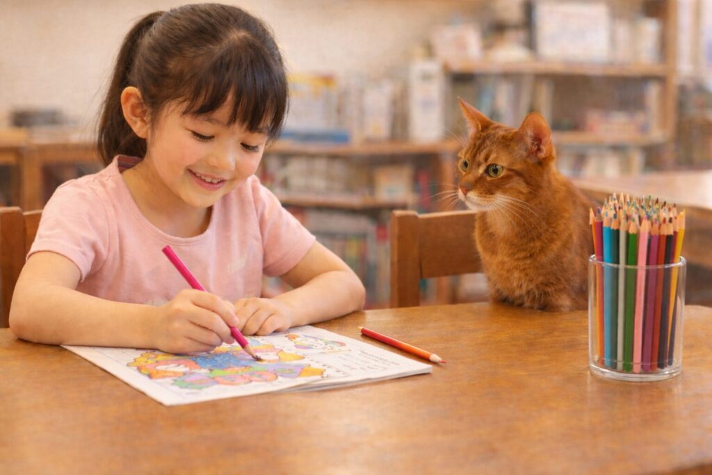 色鉛筆で塗り絵をしたり。